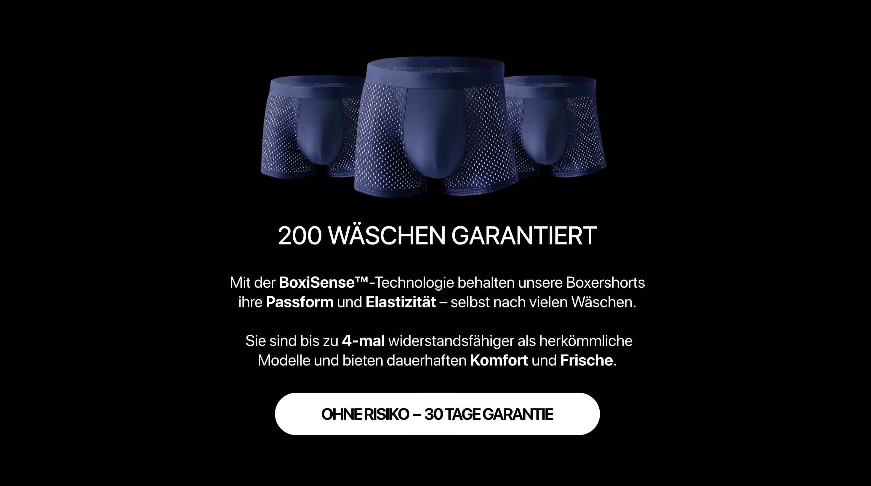 • Bis zu 4× langlebiger als klassische Boxershorts – Waschgang für Waschgang.