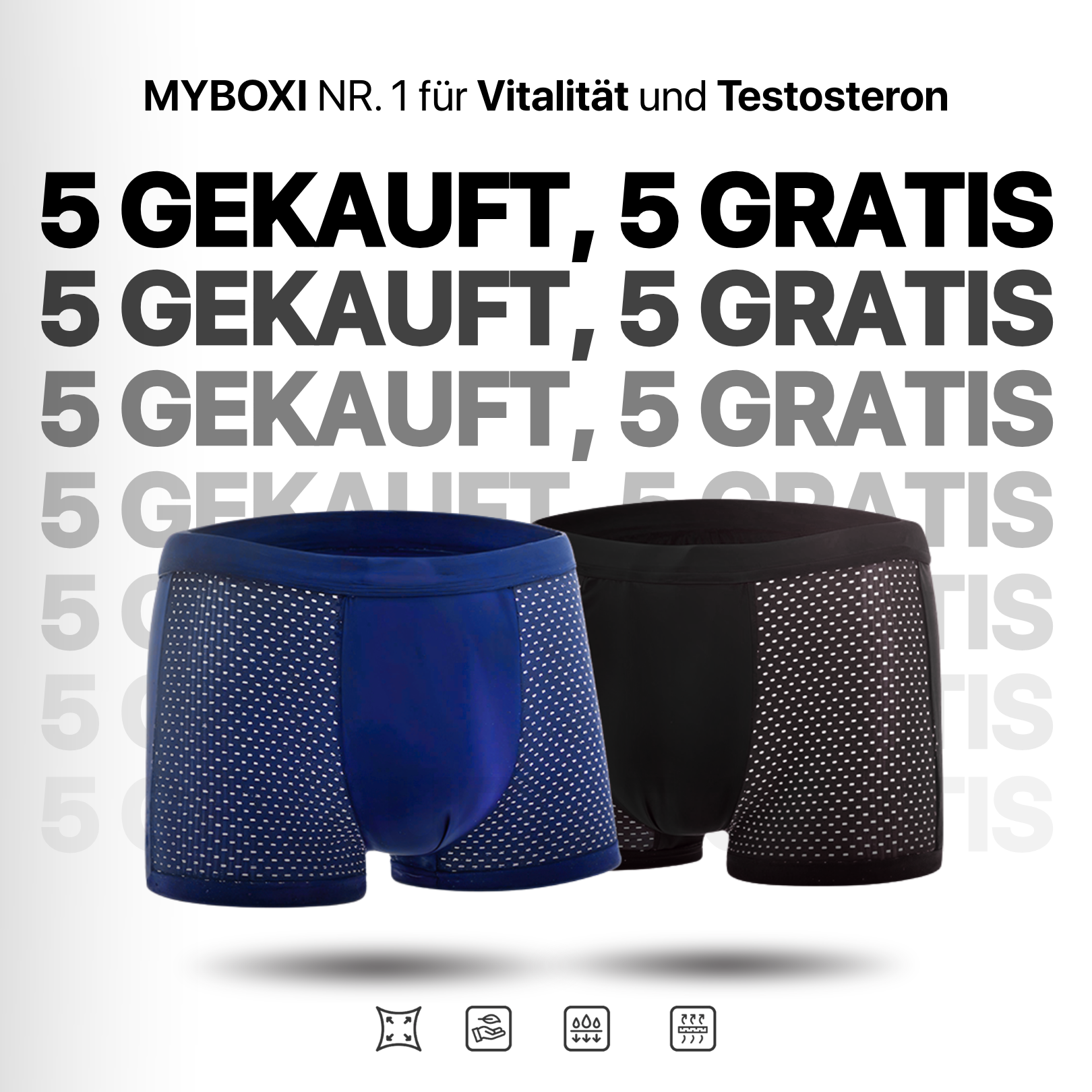 Das bedeutet: Sie kaufen 5 MYBOXI-Boxershorts, und wir schenken Ihnen 5 weitere völlig kostenlos dazu.