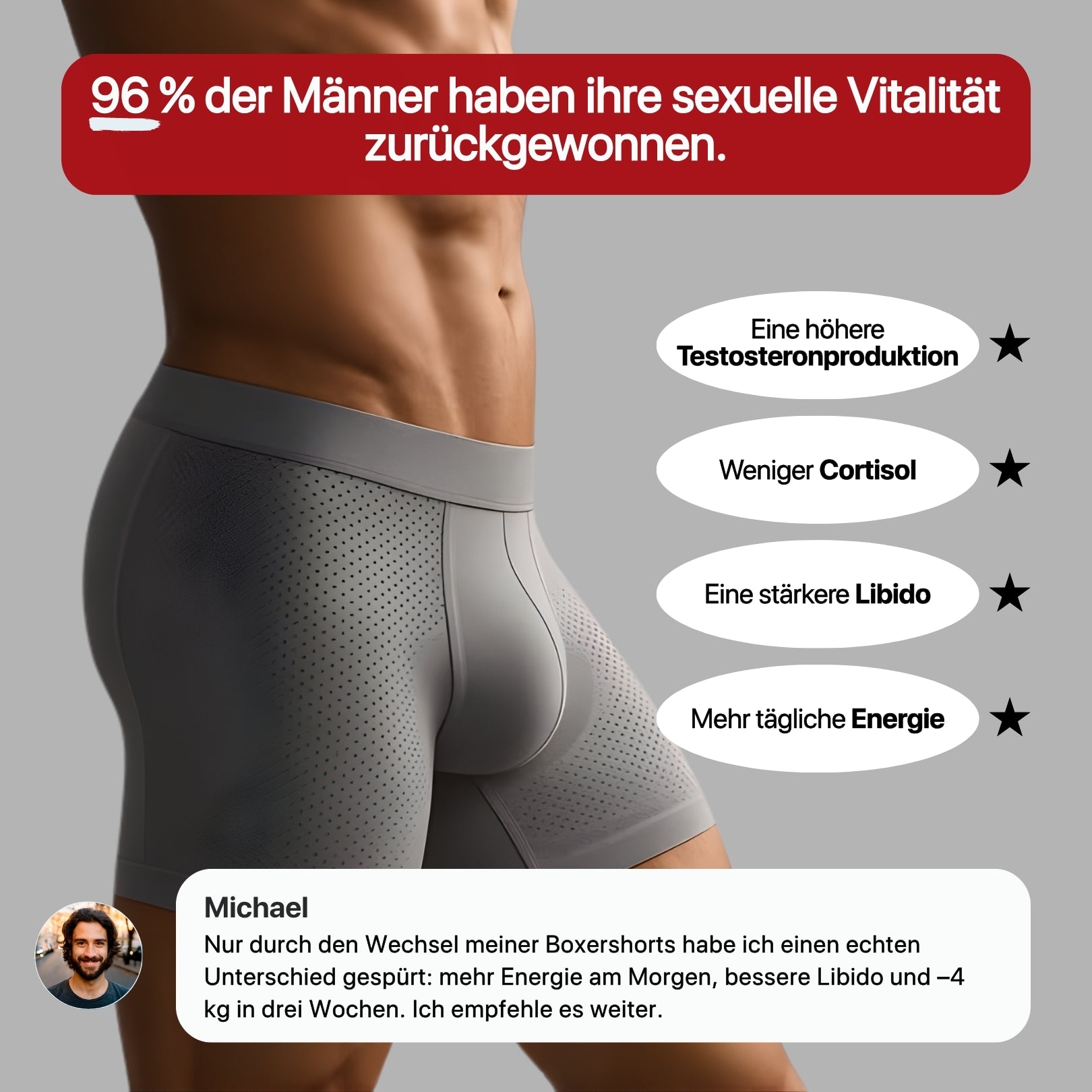 Zwei Freunde, Benjamin und Hugo, mit einer einfachen Erkenntnis: Jeder trägt jeden Tag einen Boxershort – warum also nicht eine intelligente Wahl für die Gesundheit daraus machen?