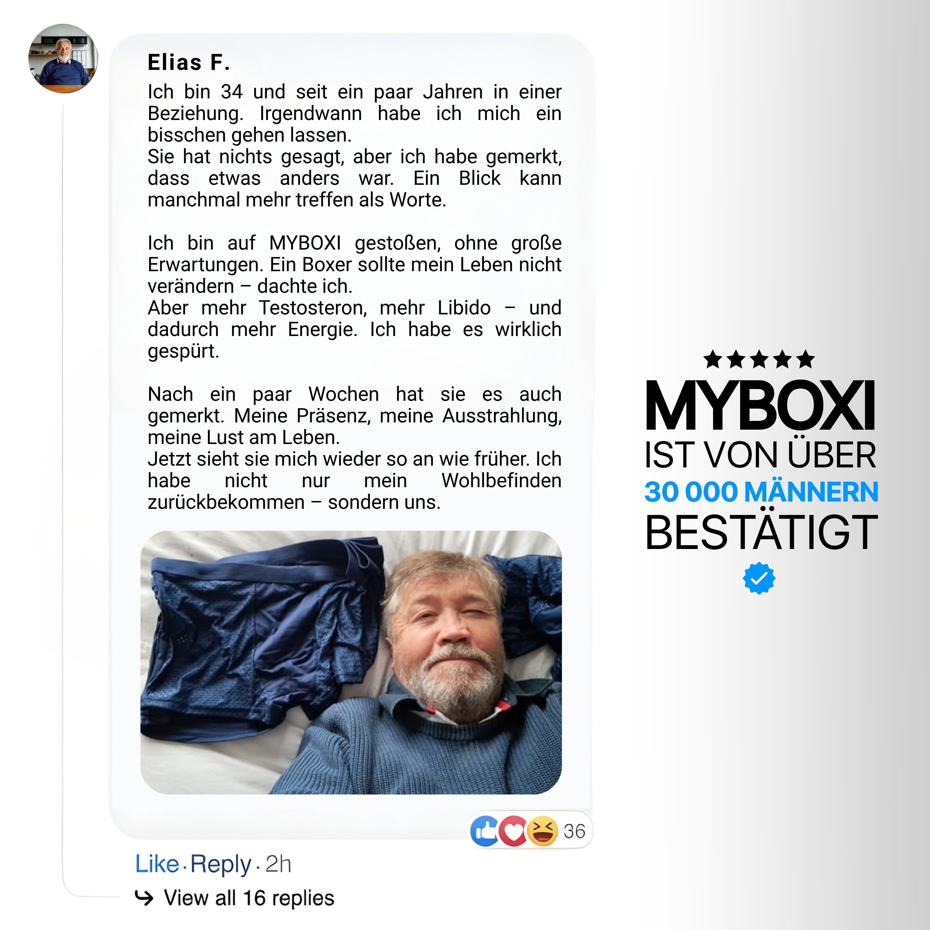 MYBOXI ist kein gewöhnlicher Boxershort. Dank Premium-Bambusfasern und unserer BoxiSense™-Technologie bleiben Sie den ganzen Tag trocken, bequem und frei von Chemikalien.